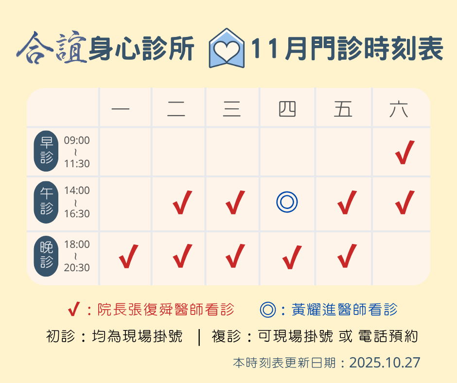 2025 年 11 月起 門診時間如下